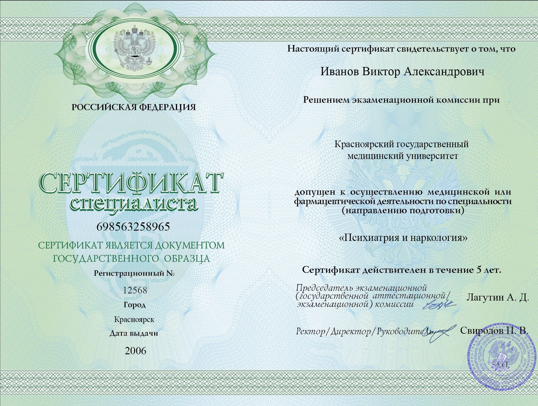 Иванов Виктор Александрович — высококвалифицированный психиатр-нарколог с 18-летним стажем работы в сфере психиатрии и наркологии. Окончил Красноярский государственный медицинский университет в 2004 году по специальности «Лечебное дело», в 2006 году получил дополнительную специализацию по психиатрии и наркологии. В 2012 году прошел переподготовку по программе «Психотерапия зависимостей».