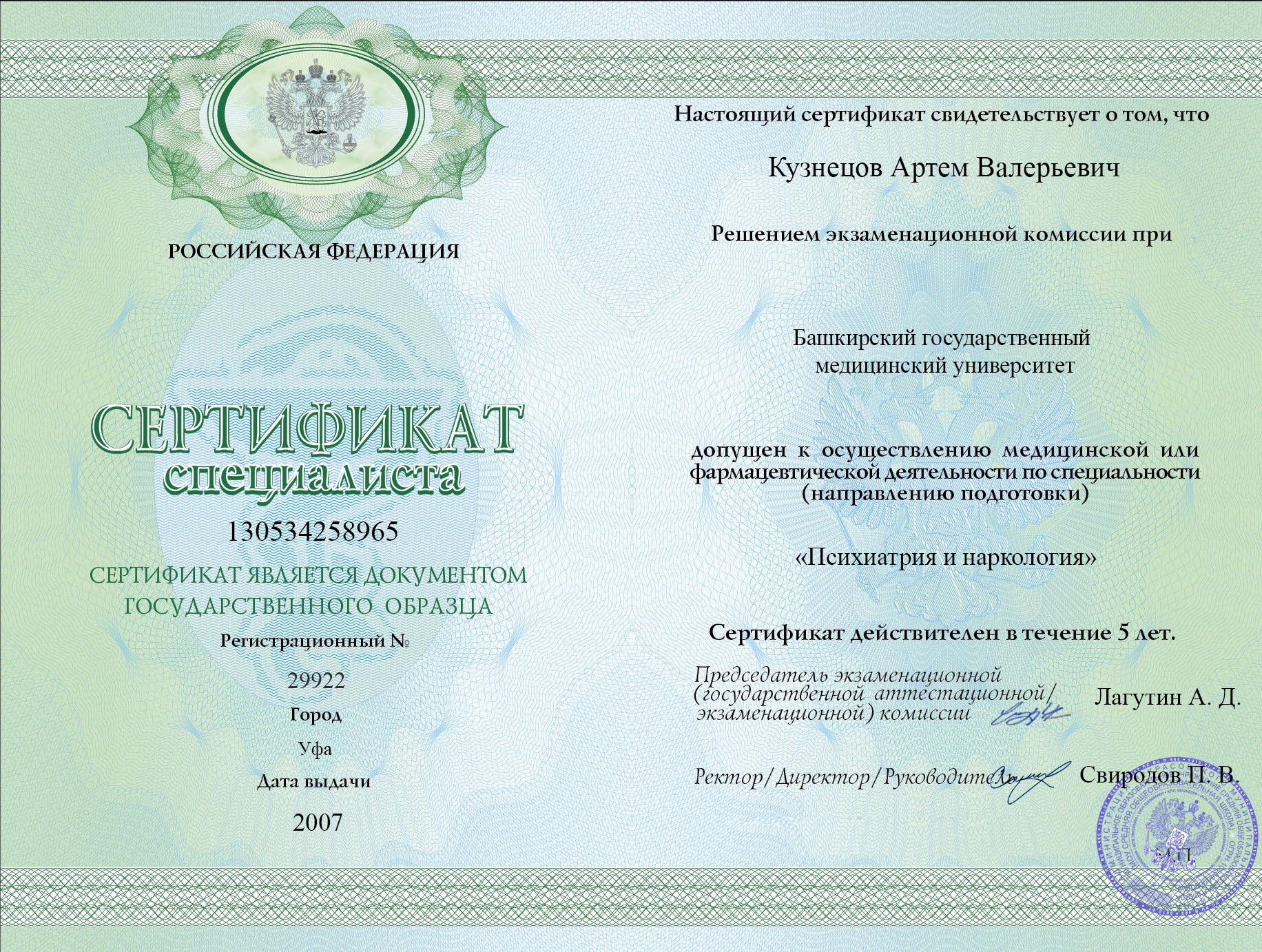ВУЗ: Уфимский государственный медицинский университет, 2005 г.