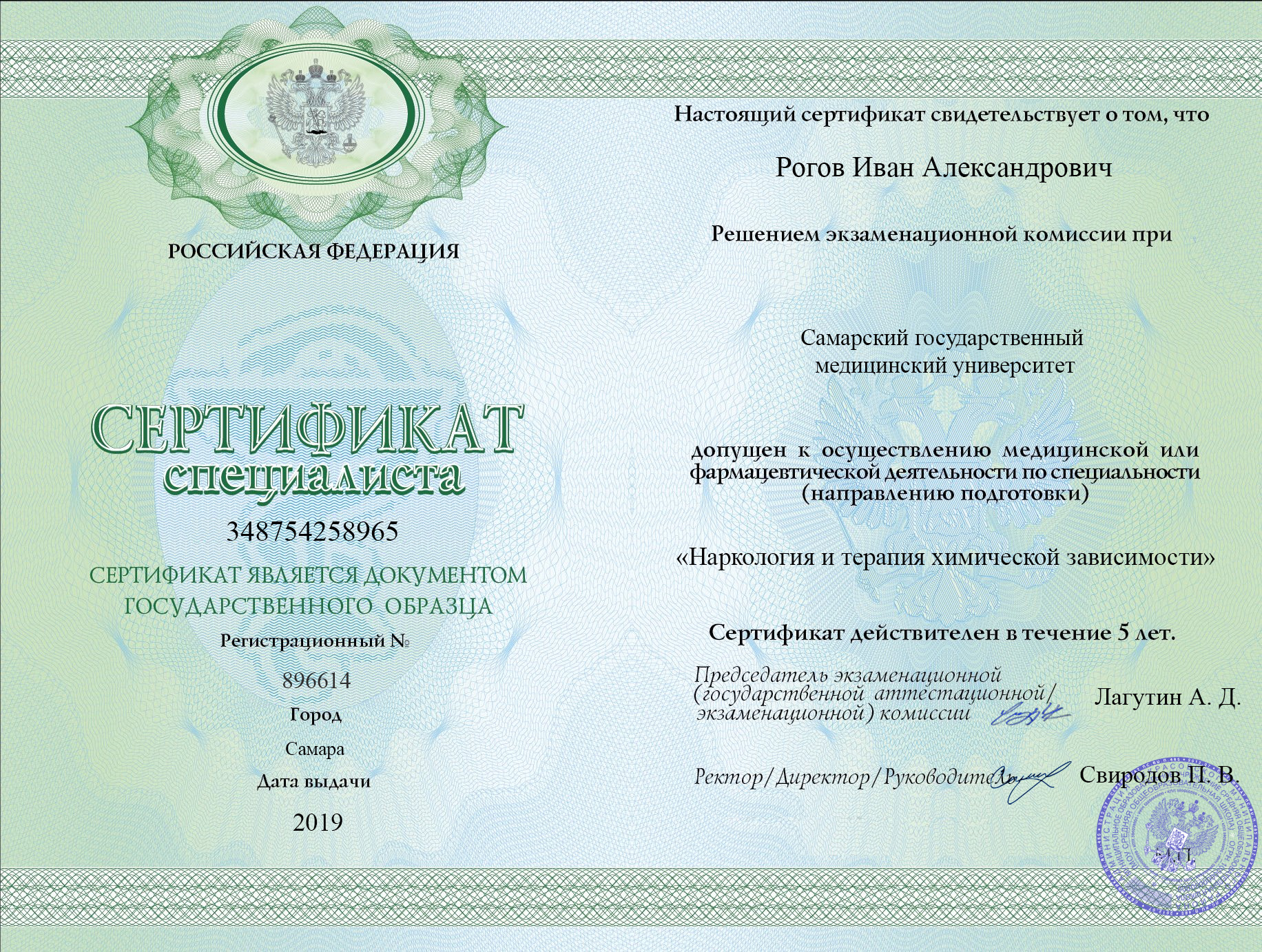 Иван Александрович Рогов — эксперт по терапии химической зависимости с 15-летним опытом работы. Окончил Самарский государственный медицинский университет в 2007 году, получив диплом по специальности «Лечебное дело». В 2010 году ококнчил ординатуру по наркологии, и в 2011 получил сертификат по наркологии и терапии химической зависимости.